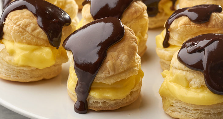 Bake for 18 minutes or until the pastries are golden brown. Let the pastries cool on the baking sheet on a wire rack for 10 minutes. Split the pastries into 2 layers.